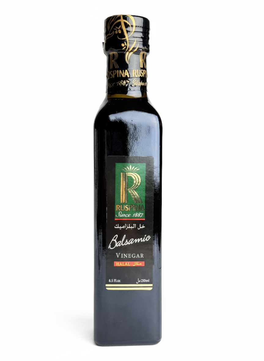 Vinaigre balsamique Ruspina 250 ml, au goût doux et légèrement sucré, idéal pour sublimer salades, viandes, légumes et fromages. Sa texture équilibrée et son origine de Modène garantissent une touche raffinée à toutes vos recettes.